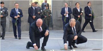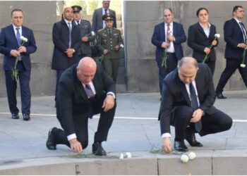 İrakli Çikovani, Ermeni Soykırımı kurbanlarının anısına dikilen anıta çelenk bıraktı.