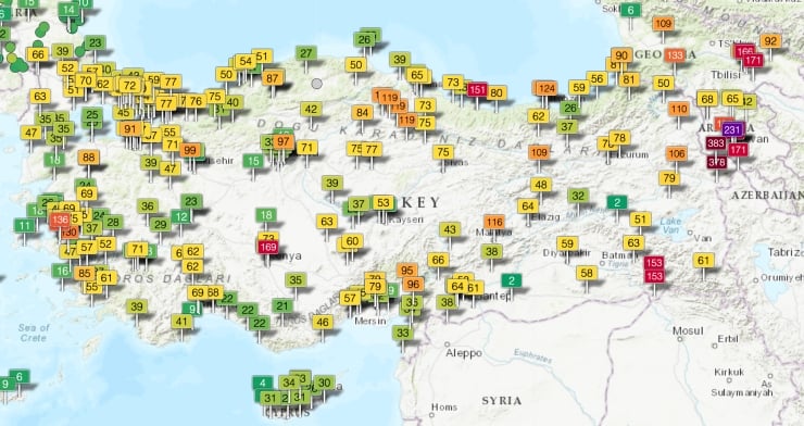 «Համաշխարհային օդի որակի ինդեքսը» հրապարակել է սույն թվականի դեկտեմբերի 1-ի դրությամբ Թուրքիայի օդի աղտոտվածության վերաբերյալ տվյալներ։