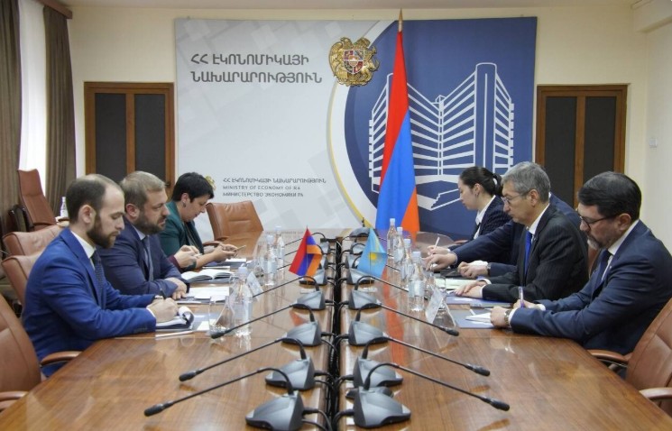 Ermenistan Ekonomi Bakanı Gevorg Papoyan, 20 Ekim’de Kazakistan’ın Ermenistan Büyükelçisi Bolat İmanbayev’i kabul etti. Bakanlıktan yapılan açıklamaya göre, görüşmede iki ülke arasında karşılıklı yarar sağlayacak ekonomik işbirliğinin geliştirilmesi, ticaret hacminin artırılması, ihracat ve ithalatın çeşitlendirilmesi ile yeni lojistik güzergâhların oluşturulması konuları ele alındı.