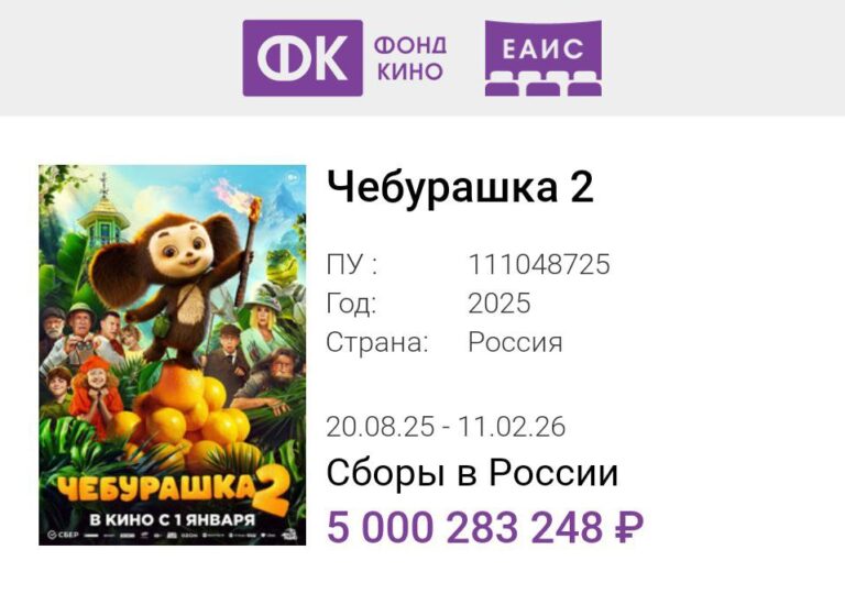 Ermeni yönetmen Eduarda İlyoyan'ın yerli yapım masal filmi Çeburaşka 2’nin Rusya’daki gişe hasılatı 5 milyar ruble sınırını geçti.