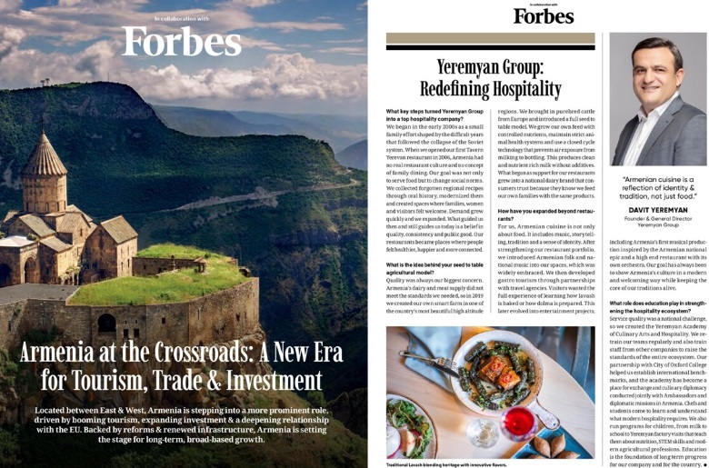 Forbes’e göre Yeremyan Group, yalnızca bir restoran zinciri değil; tarım, eğitim ve kültürü bir araya getiren bütüncül yaklaşımıyla Ermenistan’da misafirperverlik...