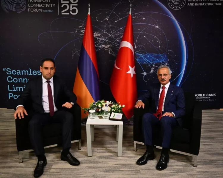 28 Haziran’da İstanbul’da düzenlenen “Küresel Ulaştırma Bağlantıları Forumu 2025” çerçevesinde Ermenistan Bölgesel Yönetim ve Altyapı Bakanı Davit Khudatyan, Türkiye Ulaştırma ve Altyapı Bakanı Abdulkadir Uraloğlu ile ikili bir görüşme gerçekleştirdi.