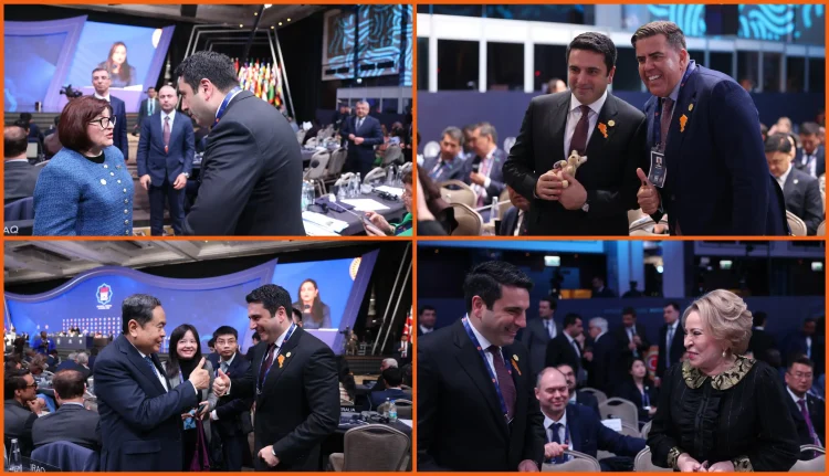 Ermenistan Parlamentosu Başkanı Alen Simonyan’ın başkanlığındaki heyet, İstanbul’daki “Parlamentolararası Birliği’nin 152. Forumu”nun oturum çalışmalarına katılıyor. Bu kapsamda Simonyan, Azerbaycan’lı ve Rusya’lı mevkidaşlarıyla ayaküstü görüşmeler yaptı.