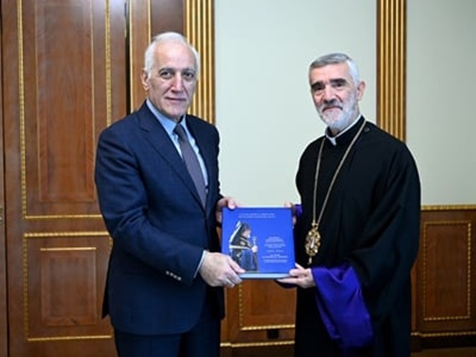 Ermenistan Cumhurbaşkanı Vahagn Khaçaturyan, Antilyas’tan gelen Kilikya Büyük Evi Katolikosluğu temsilcisi Başpiskopos Şahan Sarkisyan’ı kabul etti. Başpiskopos, Katolikos Aram I’in tahta çıkışının 30. yıldönümü dolayısıyla yayımlanan özel eseri Katolikos adına Cumhurbaşkanına takdim etti ve aynı zamanda Katolikos’un sıcak selamlarını ve kutsamasını iletti.