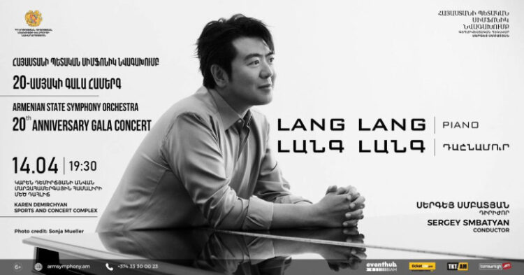Ermenistan Eğitim, Bilim, Kültür ve Spor Bakanlığı’nın finansmanı ve desteğiyle, 14 Nisan’da Karen Demirchyan Spor ve Konser Kompleksi’nin büyük salonunda, Ermenistan Devlet Senfoni Orkestrası’nın 20. kuruluş yıl dönümüne adanan gala konser düzenlenecek. Gecenin özel konuğu dünyaca ünlü piyanist Lang Lang olacak.