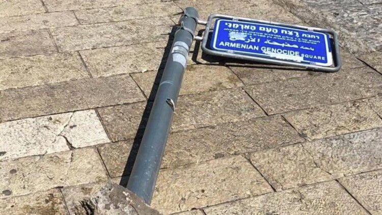 İsrail’in Hayfa kentinde Ermeni Soykırımı’na adanan meydanın tabelasının zarar gördüğü bildirildi.