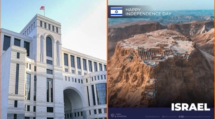 Ermenistan Dışişleri Bakanlığı, X sosyal medya platformundaki paylaşımında İsrail hükümetini ve halkını Bağımsızlık Günü dolayısıyla tebrik etti.
